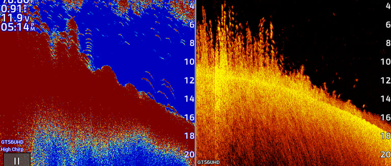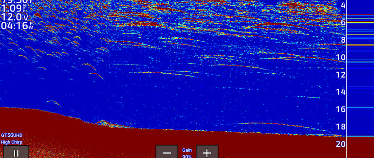 Les petits points indiquent souvent de petits poissons, tandis que des points plus gros représentent généralement des poissons plus gros ou des bancs serrés.