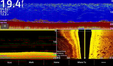 Astuce pro : Utilisez une combinaison de types d’imagerie pour une couverture complète — le 2D fournit la précision de profondeur, l'imagerie latérale révèle les bordures et les structures, l'imagerie verticale confirme la présence de poissons suspendus au-dessus du fond.
