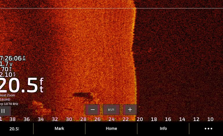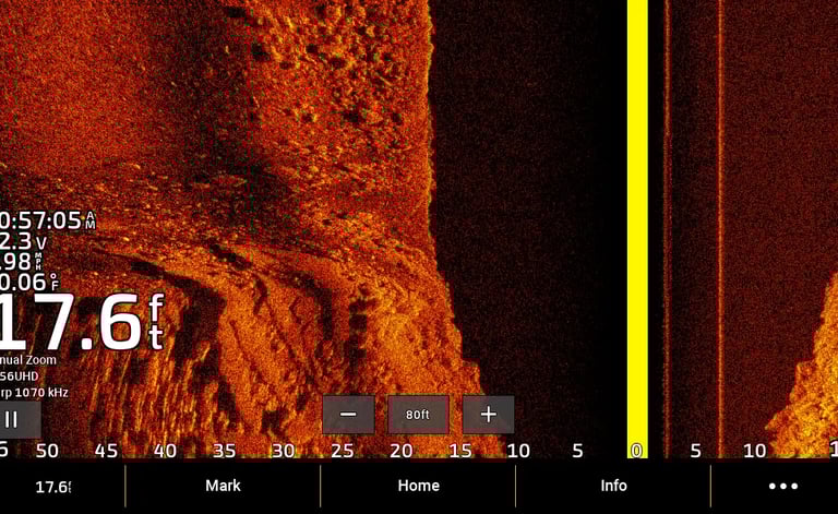 Astuce pro : Confirmez les cibles avec un sonar 2D ou CHIRP pour une estimation précise de la profondeur et de la taille.
